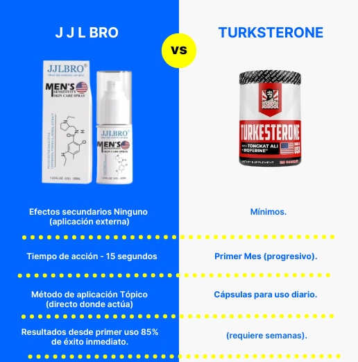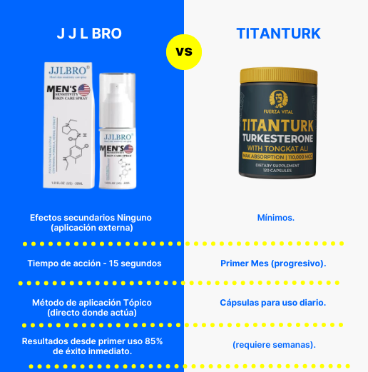 Ventajas de JJLBRO vs pastillas:- Acción en 15 segundos vs 30-60 minutos- Sin efectos secundarios (dolor de cabeza, problemas visuales, etc.)- No pasa por sistema digestivo- No requiere prescripción médica- 100% natural vs químicos sintéticos- Más económico a largo plazo.